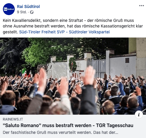 Das jetzige Urteil der Kassation kann aber nicht wirklich Anlass zu überschwänglicher Freude sein. Anders, als etwa Rai Südtirol auf Facebook nahelegt, haben die Richterinnen nämlich gerade nicht grundsätzlich klargestellt, dass der römische Gruß kein »Kavalliersdelikt« (sic) und deshalb »ohne Ausnahme« zu bestrafen sei.