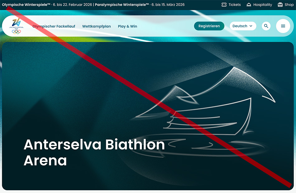 Gestern haben die Schützen in einer Pressemitteilung darauf hingewiesen, dass Antholz mit seiner Biathlon-Arena auf der offiziellen Website olympics.com mit dem faschistisch oktroyierten, kolonialen Ortsnamen dargestellt wird. Um jedoch genau zu sein, hatte zuvor — hier in den Kommentaren — Werner Pramstrahler schon am 14. Jänner auf ebendiese Tatsache aufmerksam gemacht.