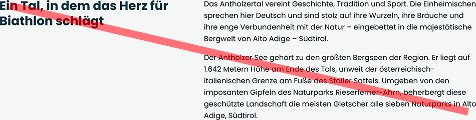 In jenen Abschnitten der Seite schließlich, die wie der Veranstaltungskalender nicht speziell Antholz gewidmet sind, scheint Antholz dann überhaupt nicht mehr auf, da nur noch der italianisierte Name der Arena relevant ist: