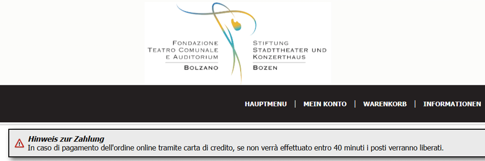 Ich habe auf der Website des Stadttheaters und Konzerthauses Bozen neulich einige Tickets gekauft. Da ist mir eine sprachliche Melange begegnet, die man sich in einem Kulturbetrieb eigentlich kaum vorstellen mag: deutschsprachige Benutzeroberflächen, in denen plötzlich ganze Abschnitte auf Italienisch erscheinen. Bezahlhinweise auf Italienisch, Schaltflächen wie »Prosegui con altri acquisti« ohne Übersetzung, mitten im deutschen Text. Und das grammatikalisch fragwürdige »Daten des Kundens«, dort, wo es selbstverständlich »Kundendaten« oder wenigstens »Daten des Kunden« heißen müsste.